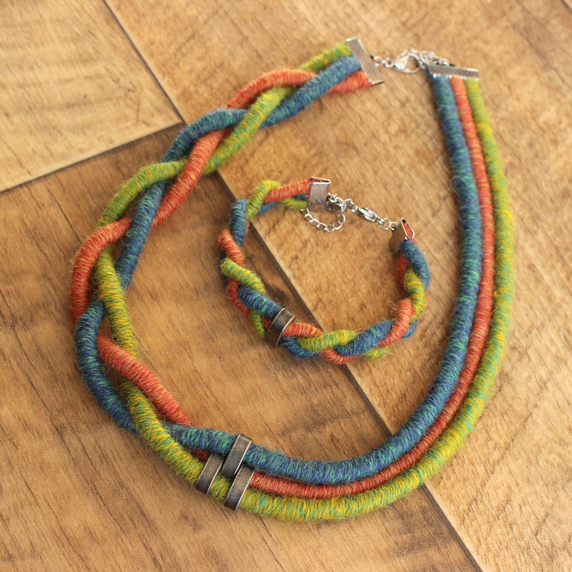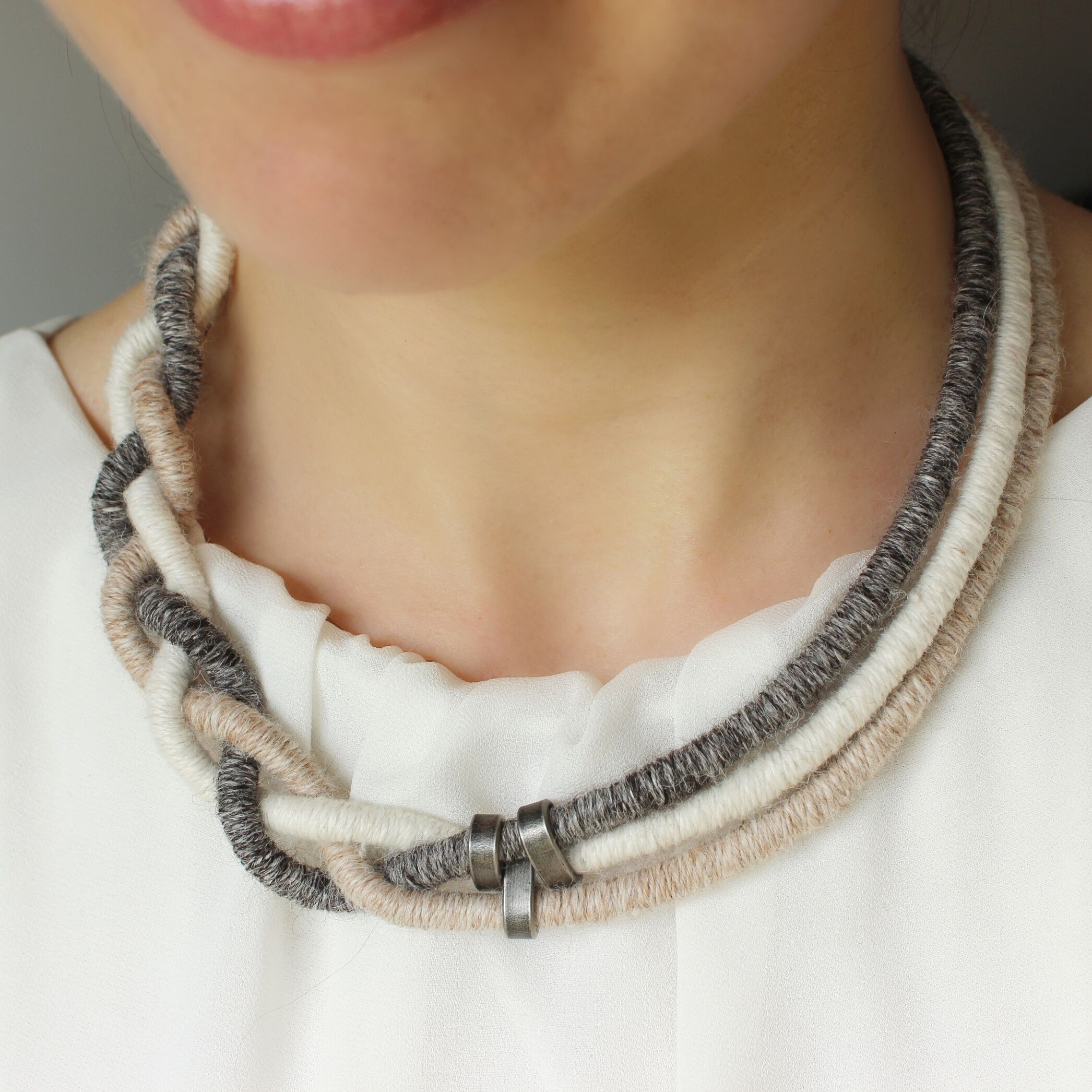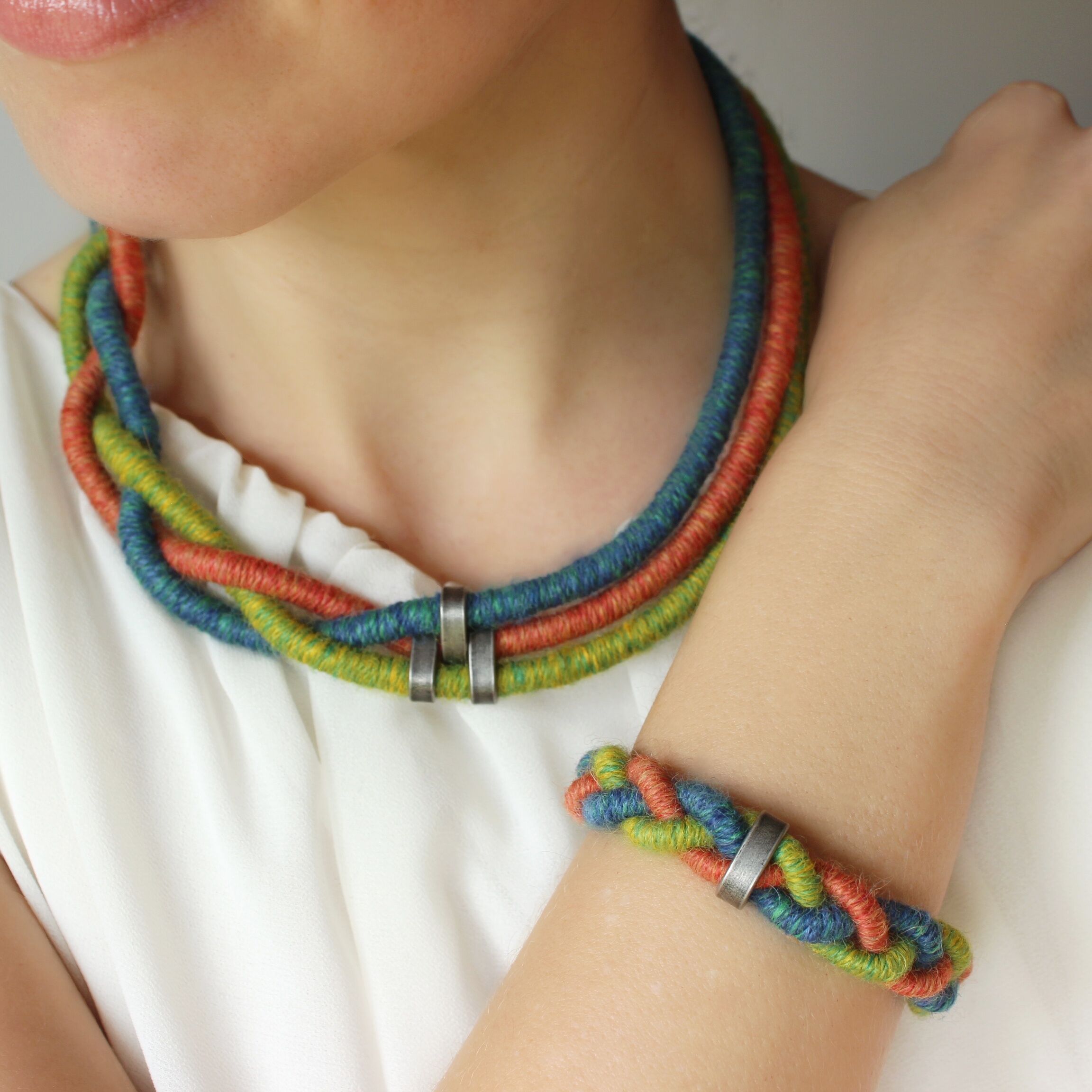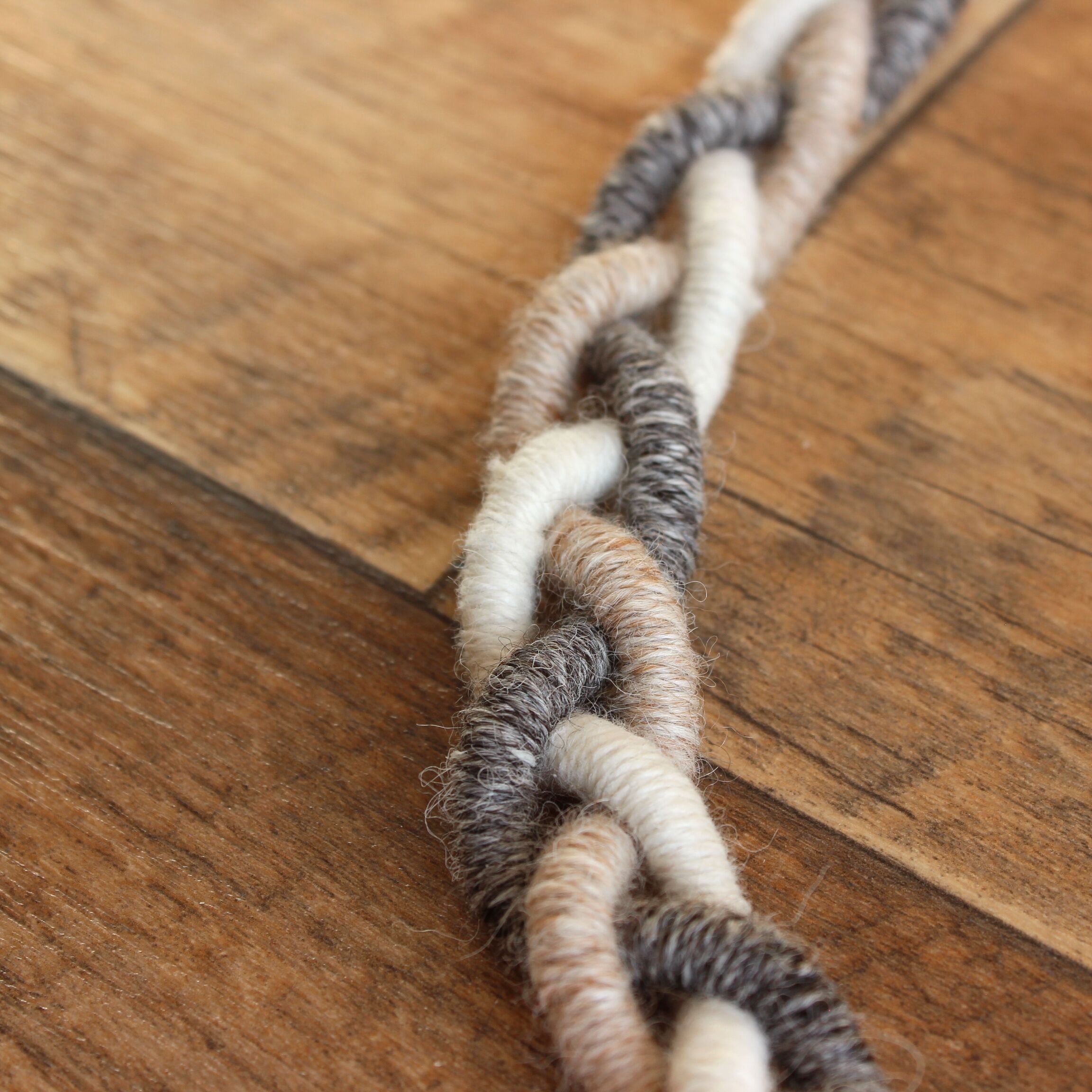 To create these sets I used a technique known as thread wrapping. This technique consists of artfully wrapping alpaca yarn around a cotton core by hand. Thanks to this, the beauty and extraordinary softness of alpaca fleece are presented in a unique way.