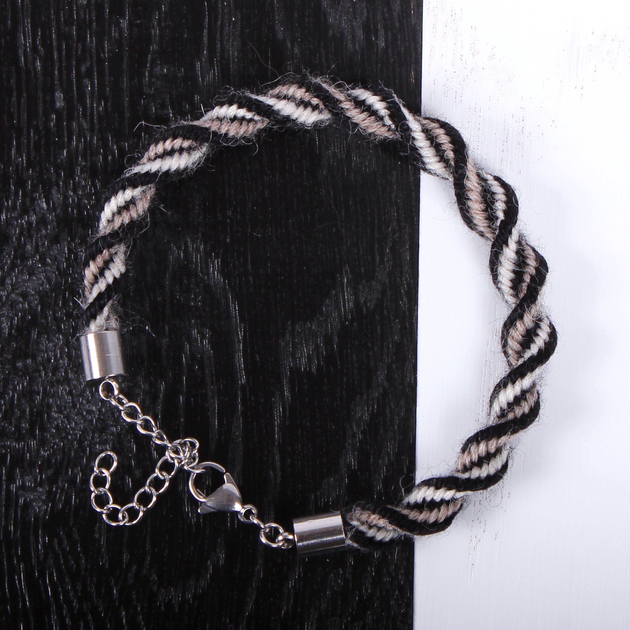 To make them I used a traditional Japanese braiding technique called Kumihimo (“gathered threads”). It’s the time-consuming technique but results that can be achieved through it are stunning. A piece of wire inside a braid makes the bangle flexible but keeps the shape so you can adjust it to your wrist. The unique pattern involves using a complex sequence of movement and constant concentration but the ending effect is worth it!