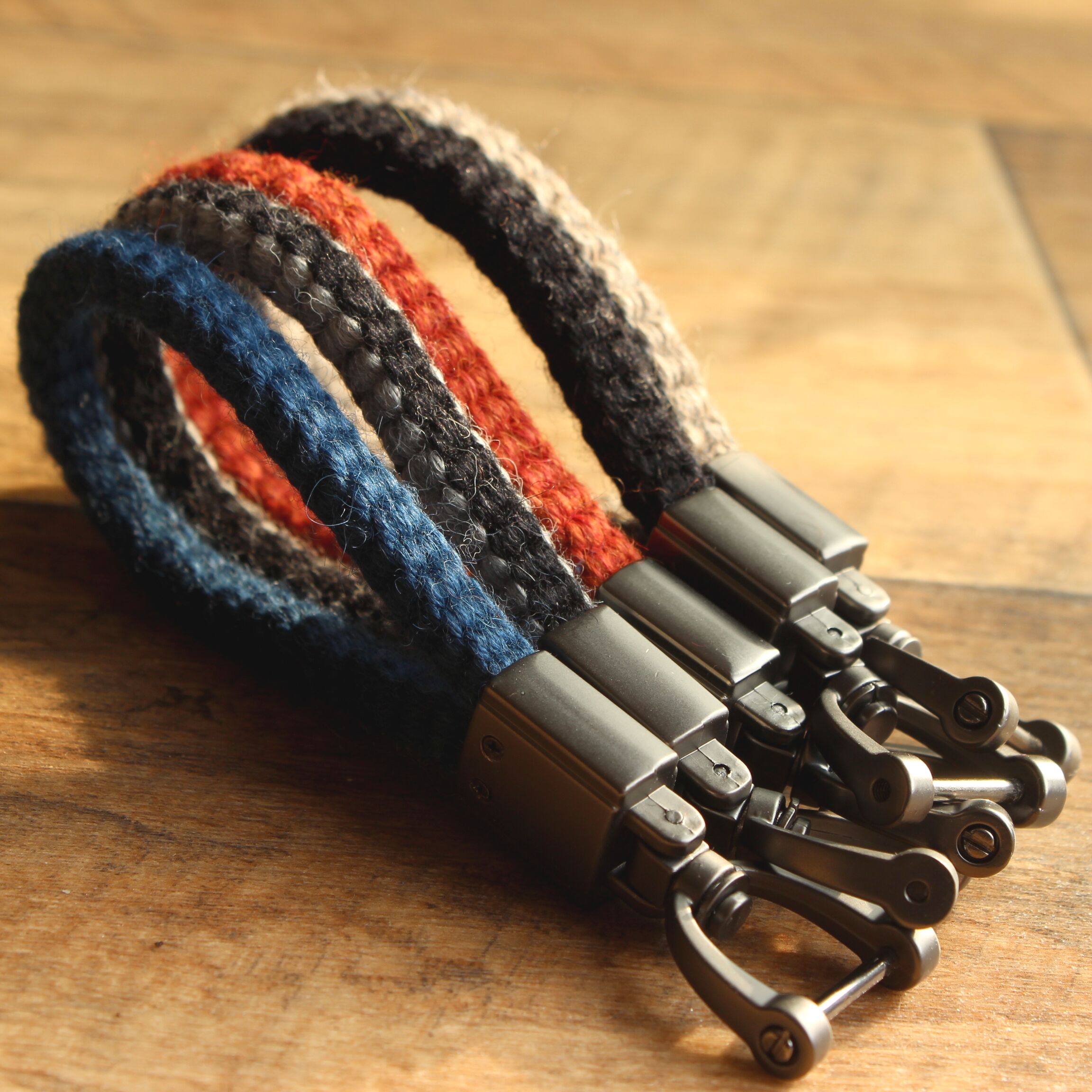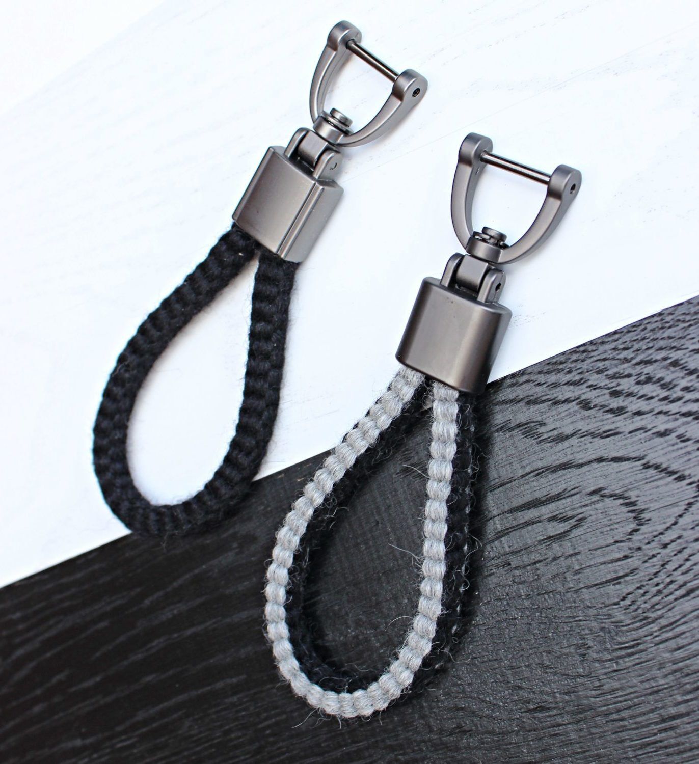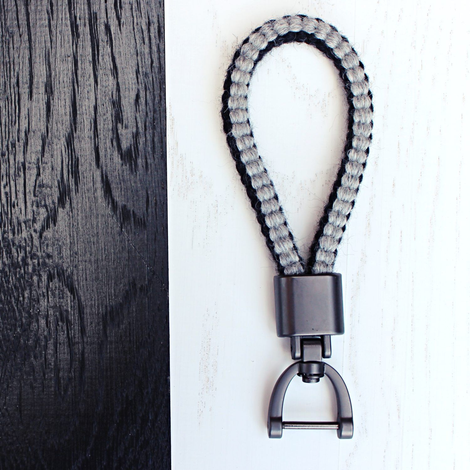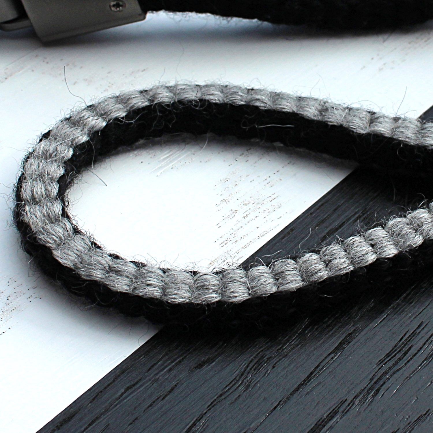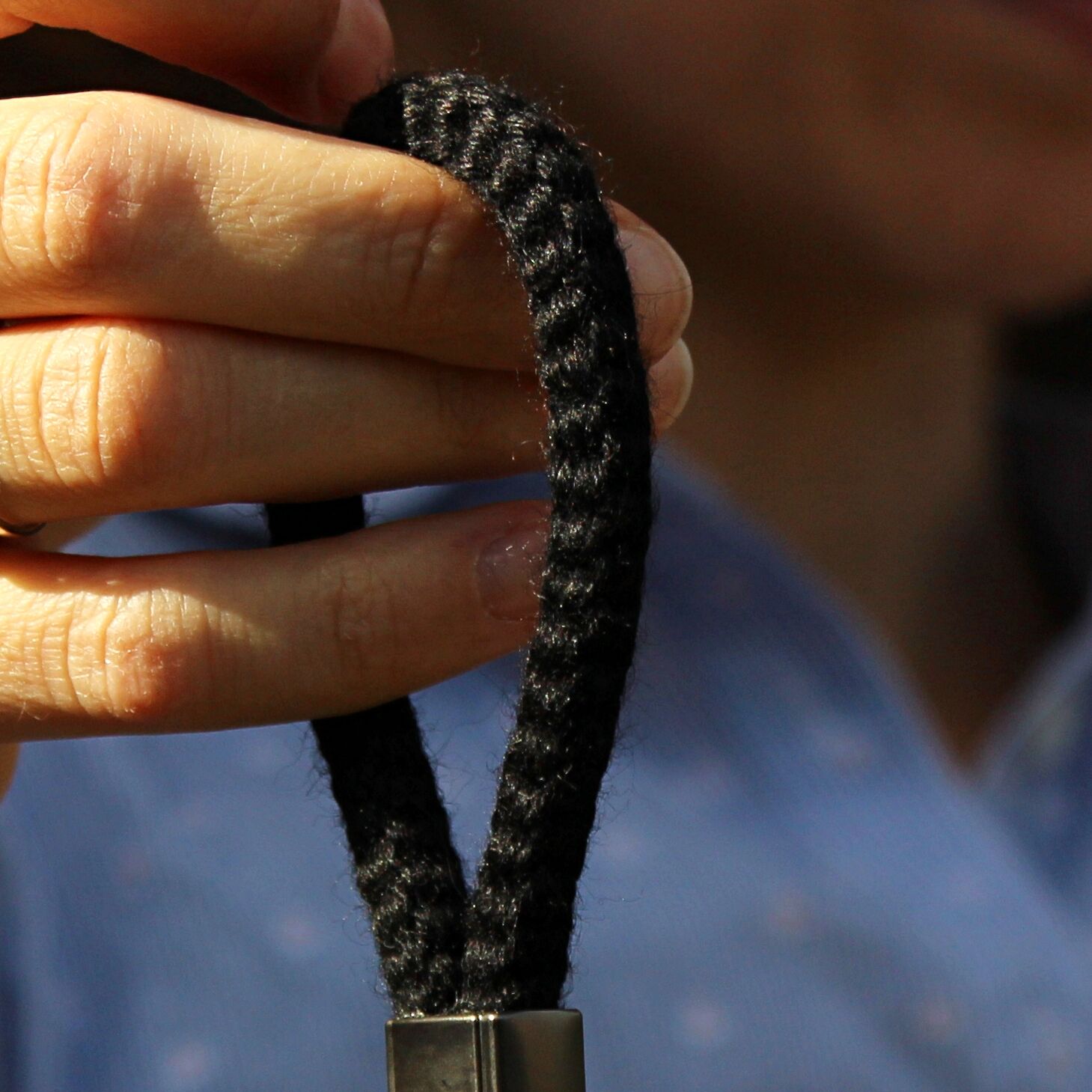 To make this key holder I used a Japanese braiding technique called Kumihimo (“gathered threads”). It’s the time-consuming technique but results that can be achieved through it are stunning. In this case, I applied the square pattern that impresses with its durability and purity. A piece of wire inside a braid makes the hey holder flexible but keeps the shape.