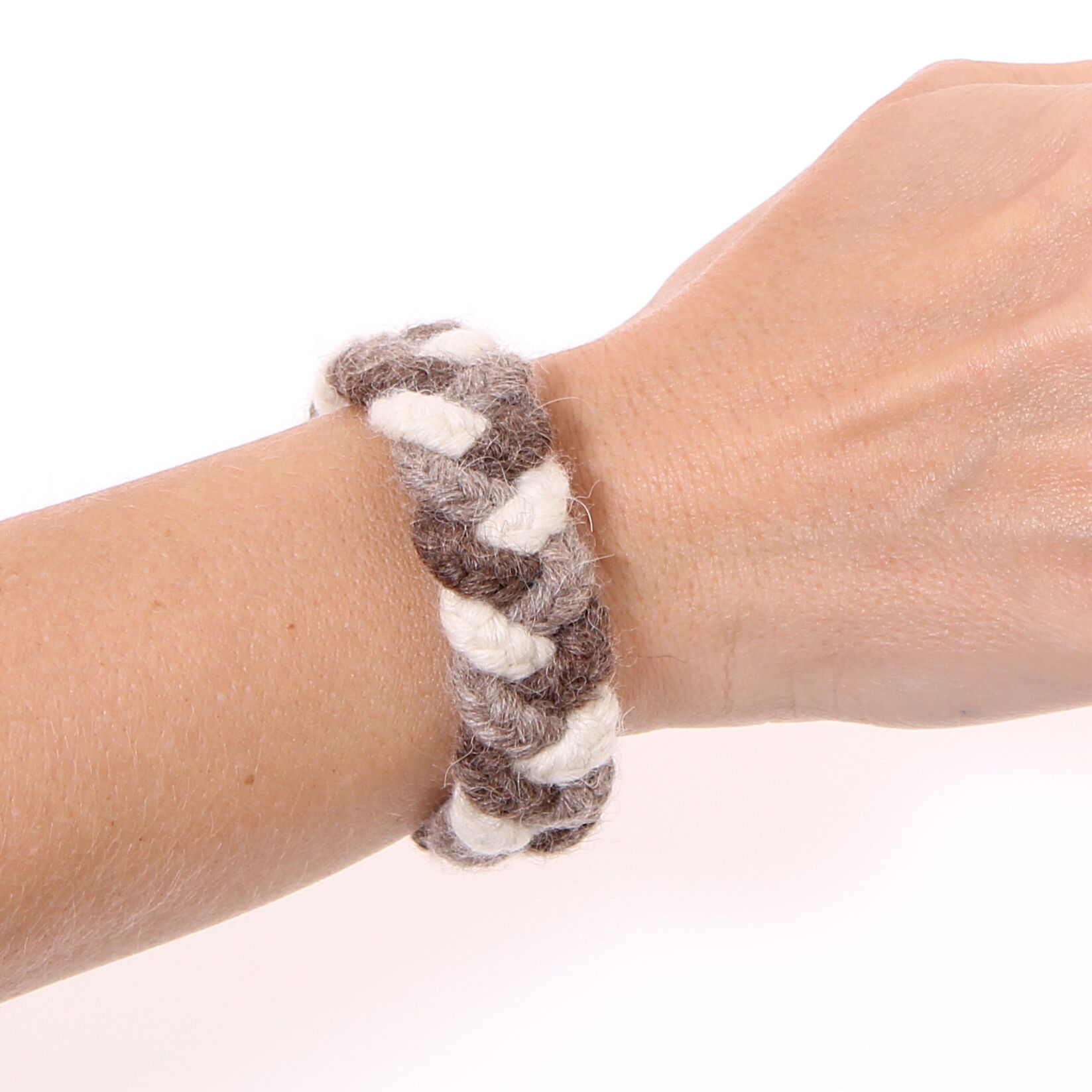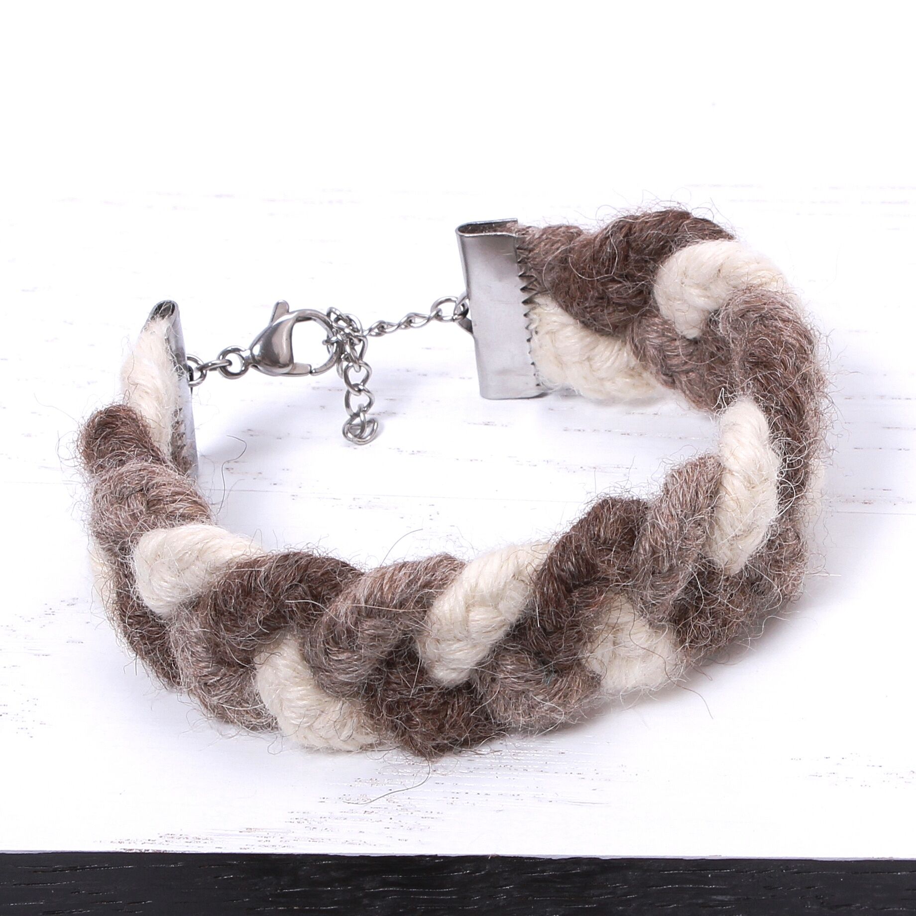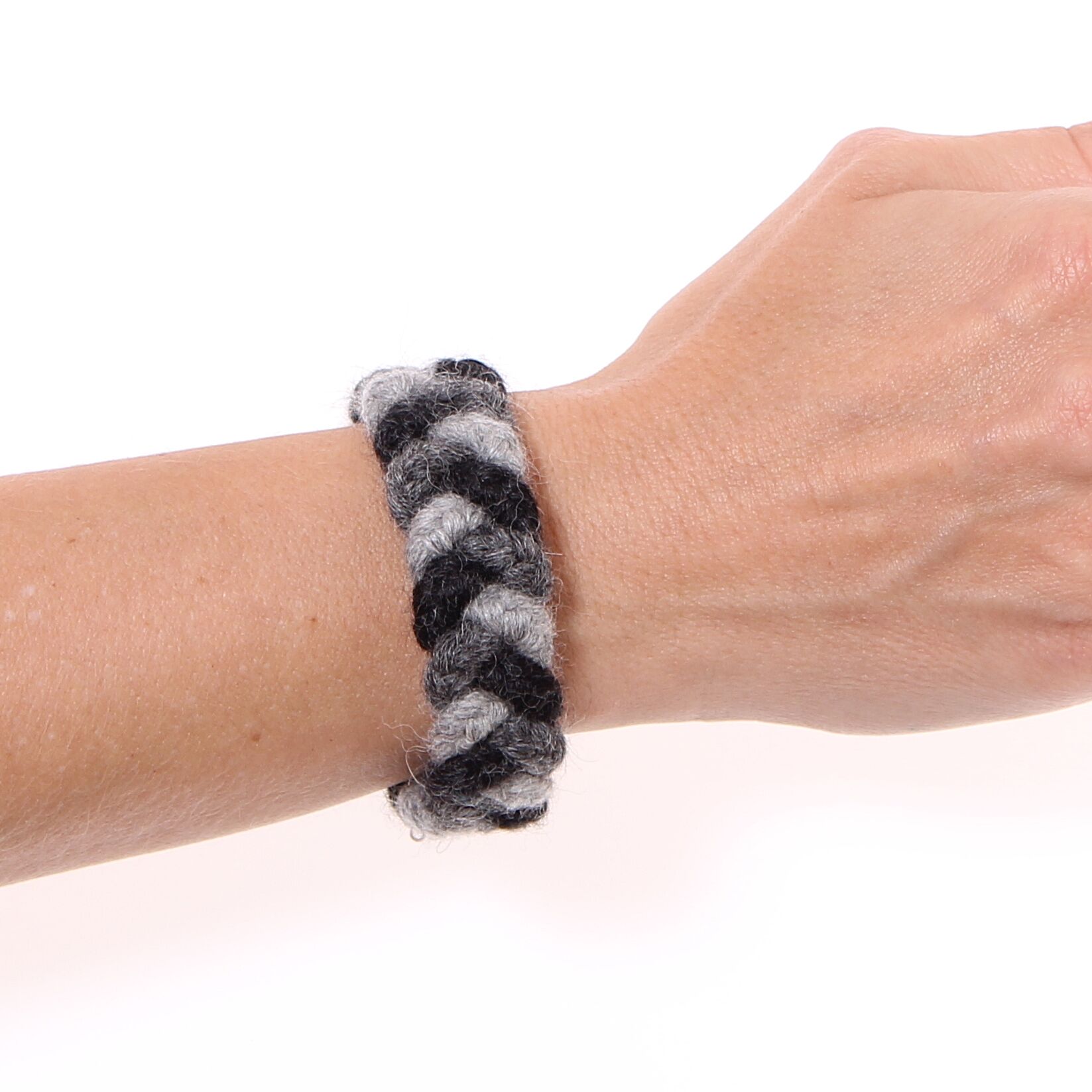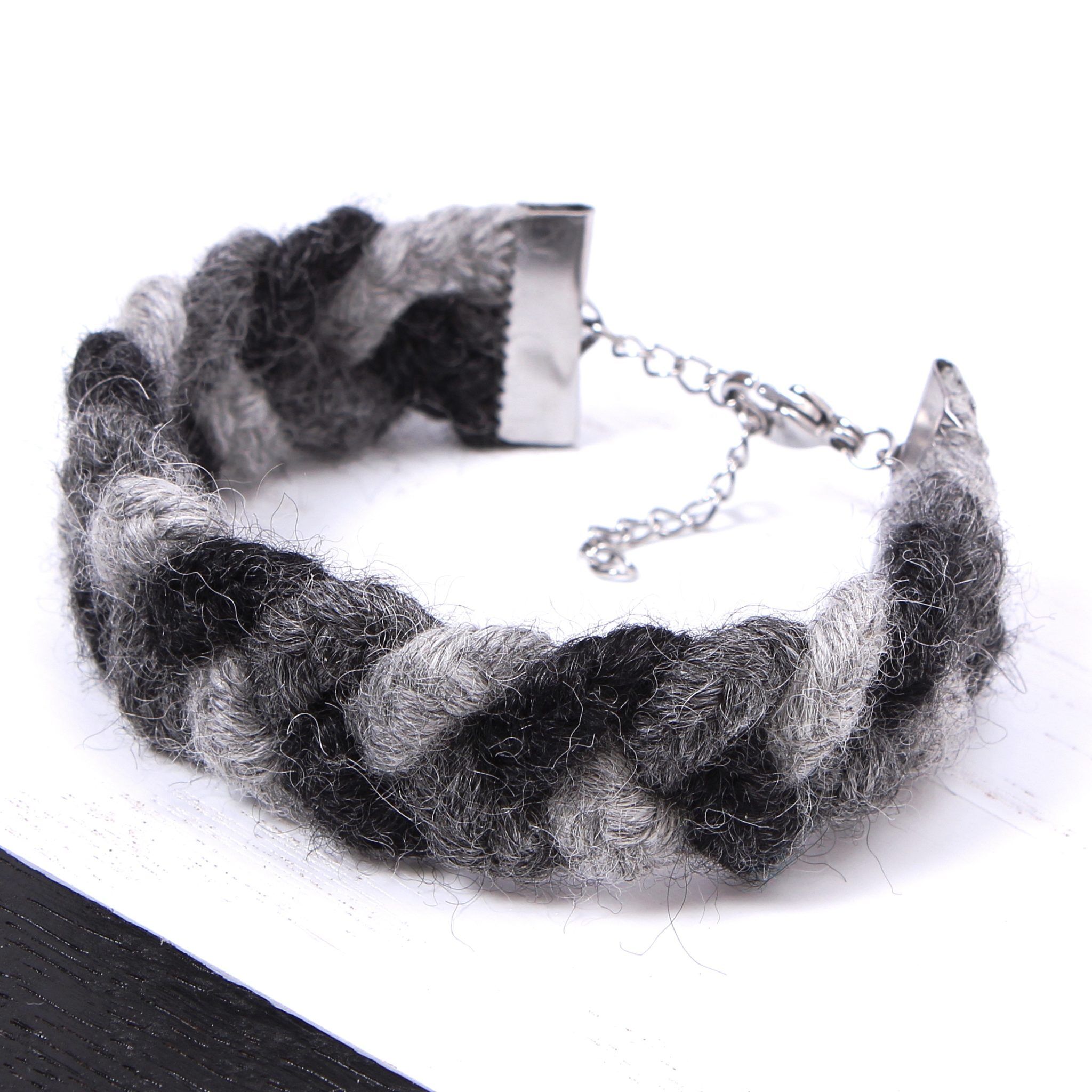 The bracelet has three intertwined braids that form the shape of a Celtic knot. A piece of wire inside braids makes the bangle flexible but keeps the shape so you can adjust it to your wrist.