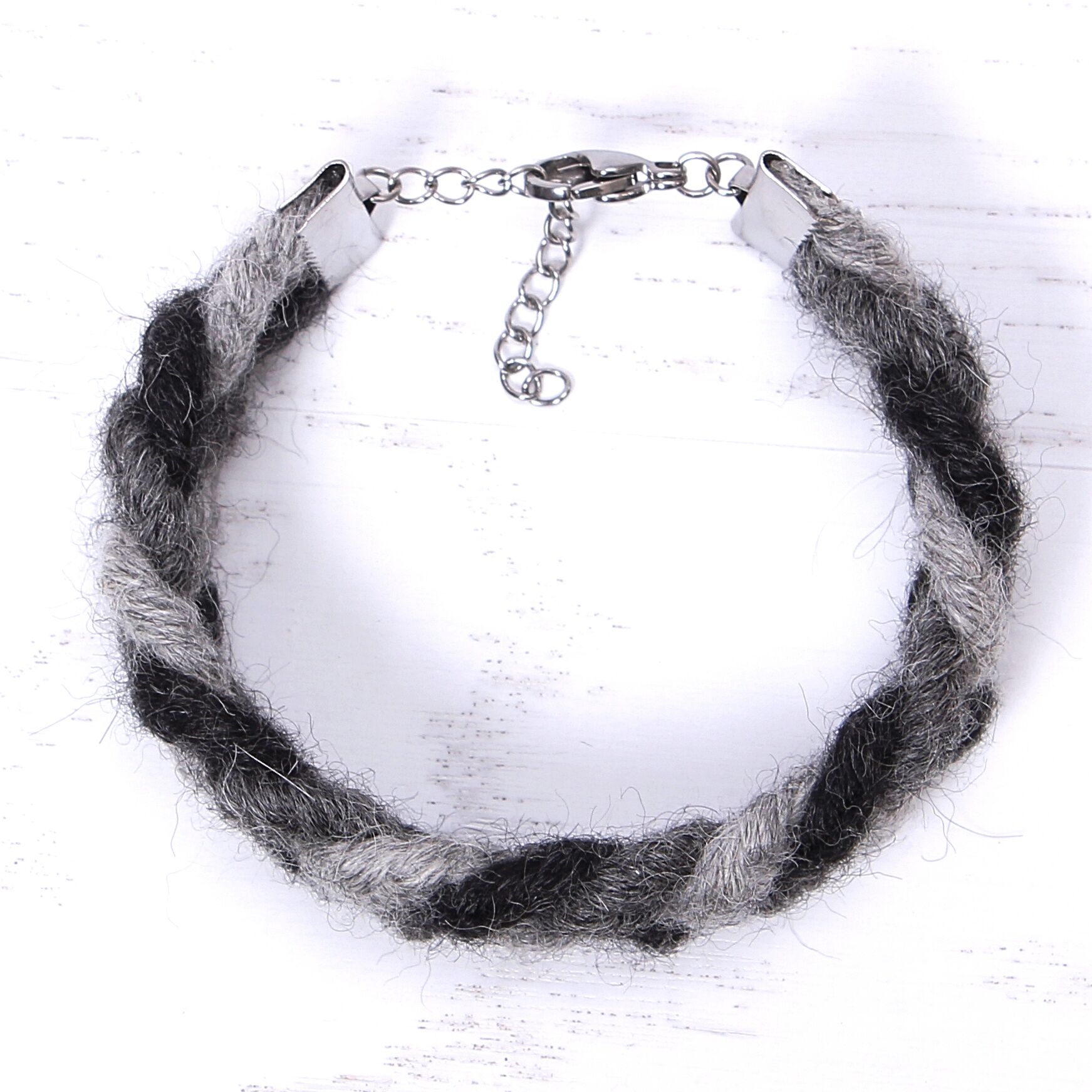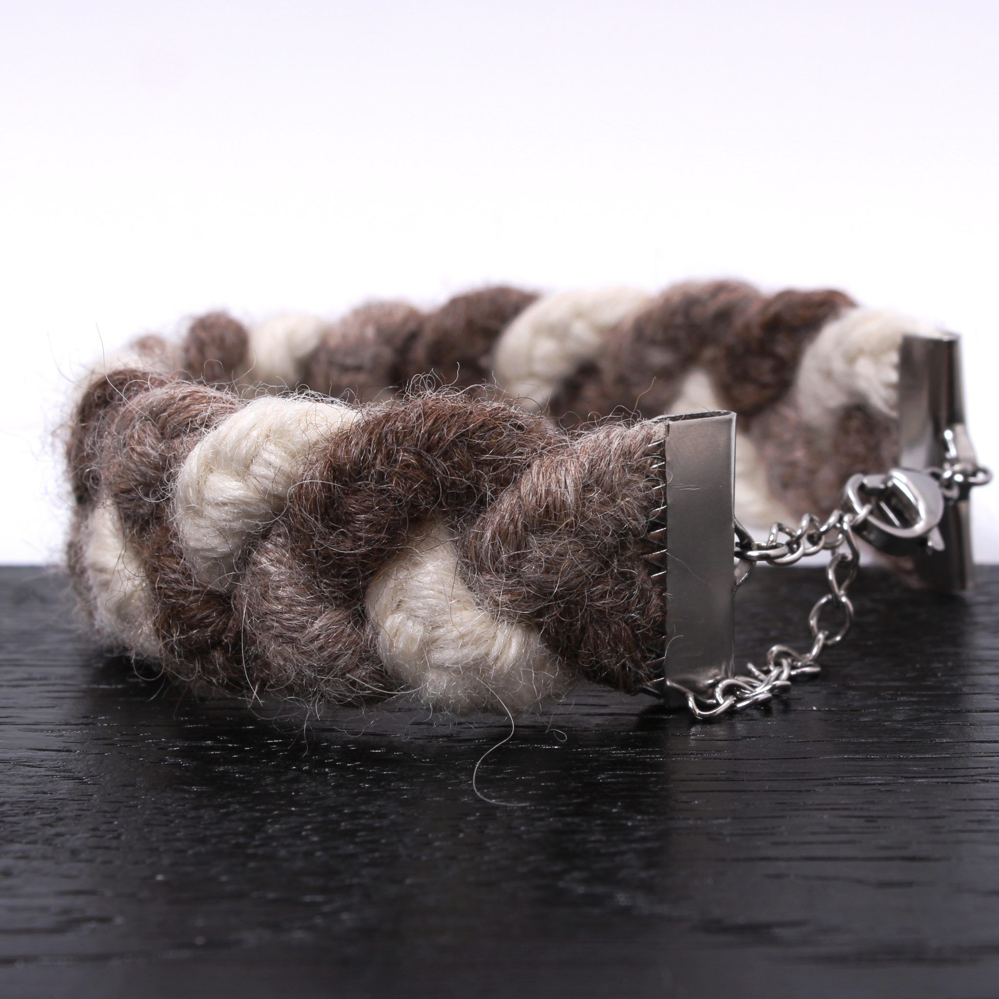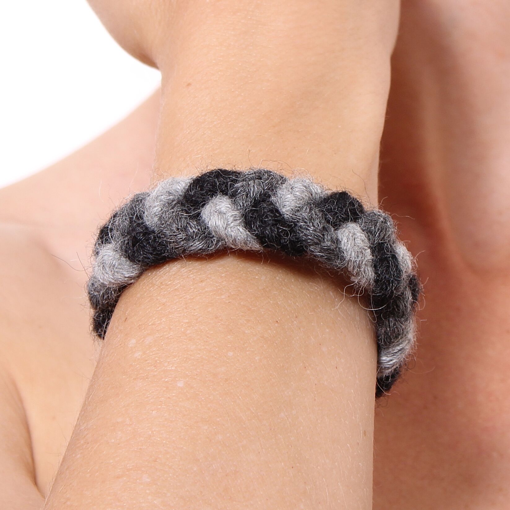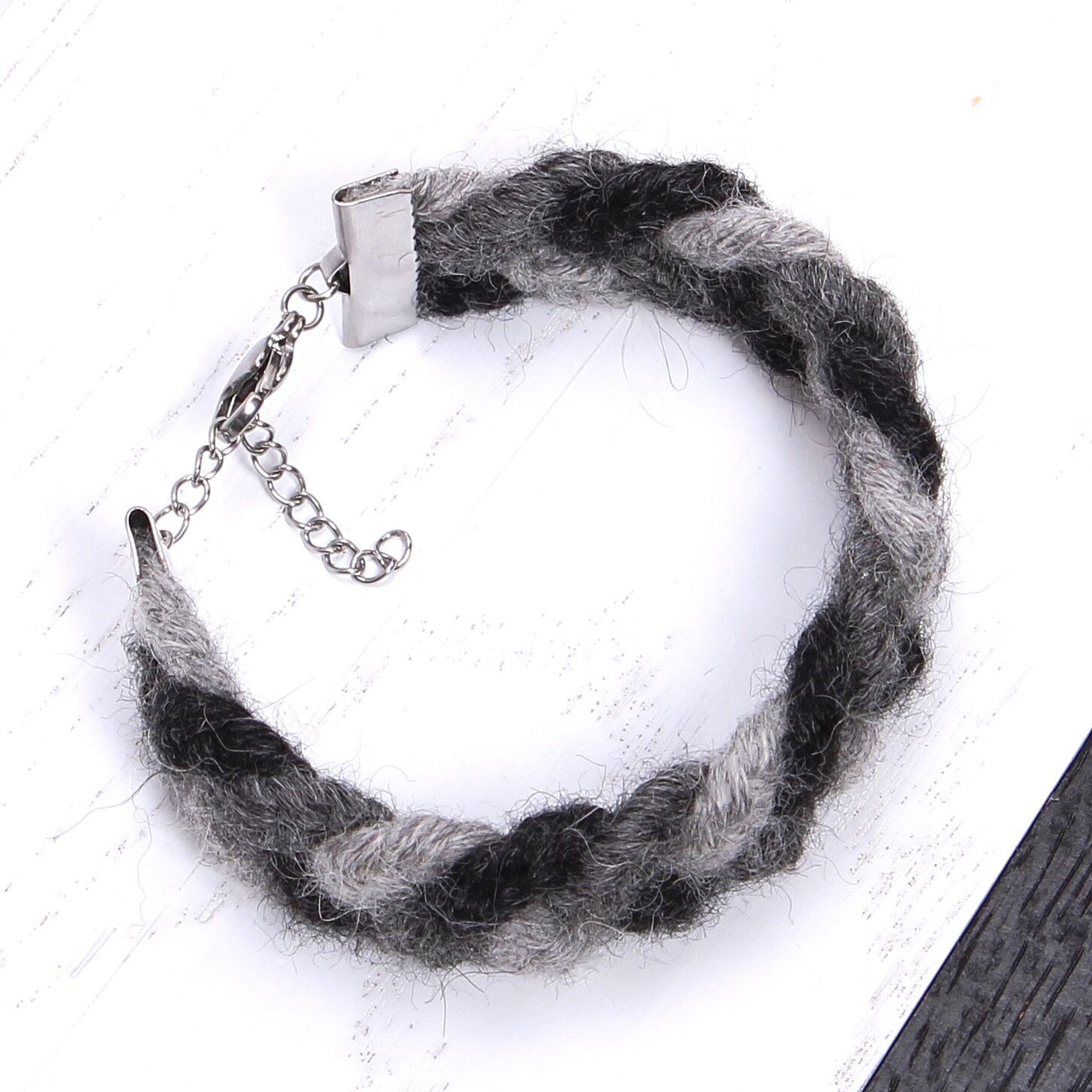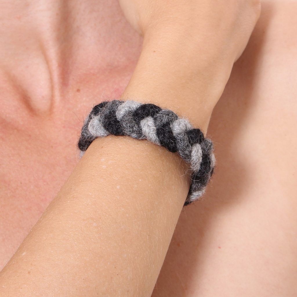 The bracelet has three intertwined braids that form the shape of a Celtic knot. A piece of wire inside braids makes the bangle flexible but keeps the shape so you can adjust it to your wrist.