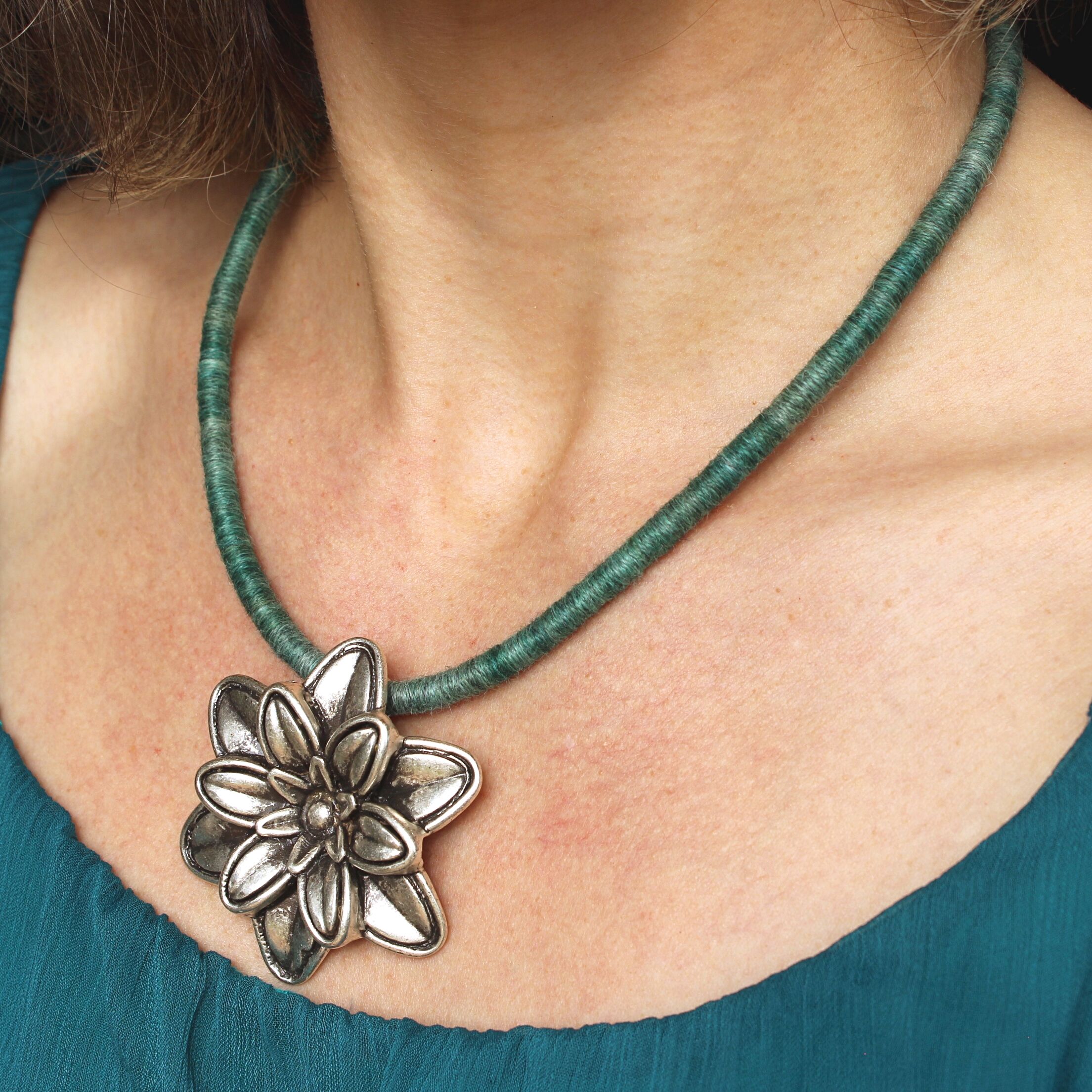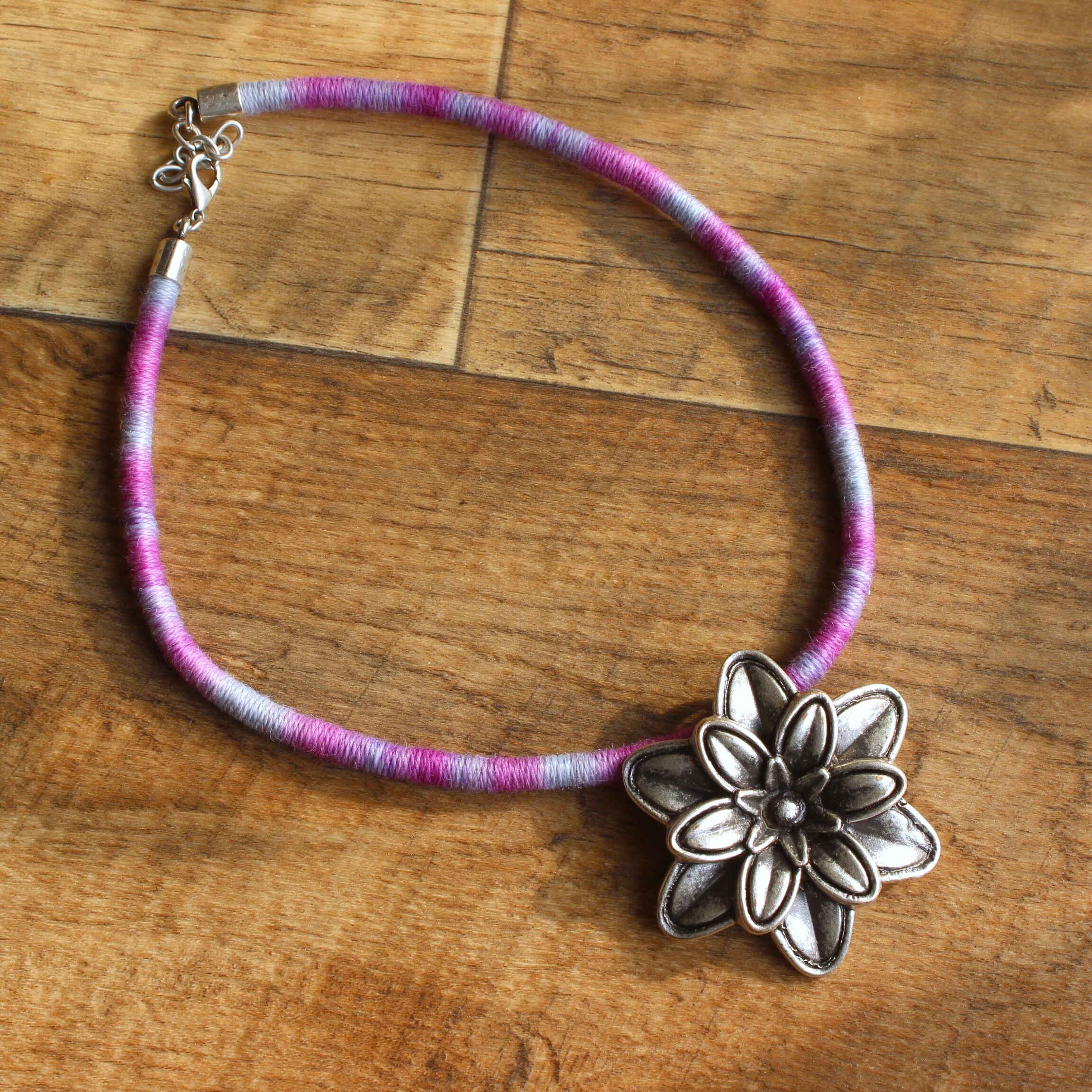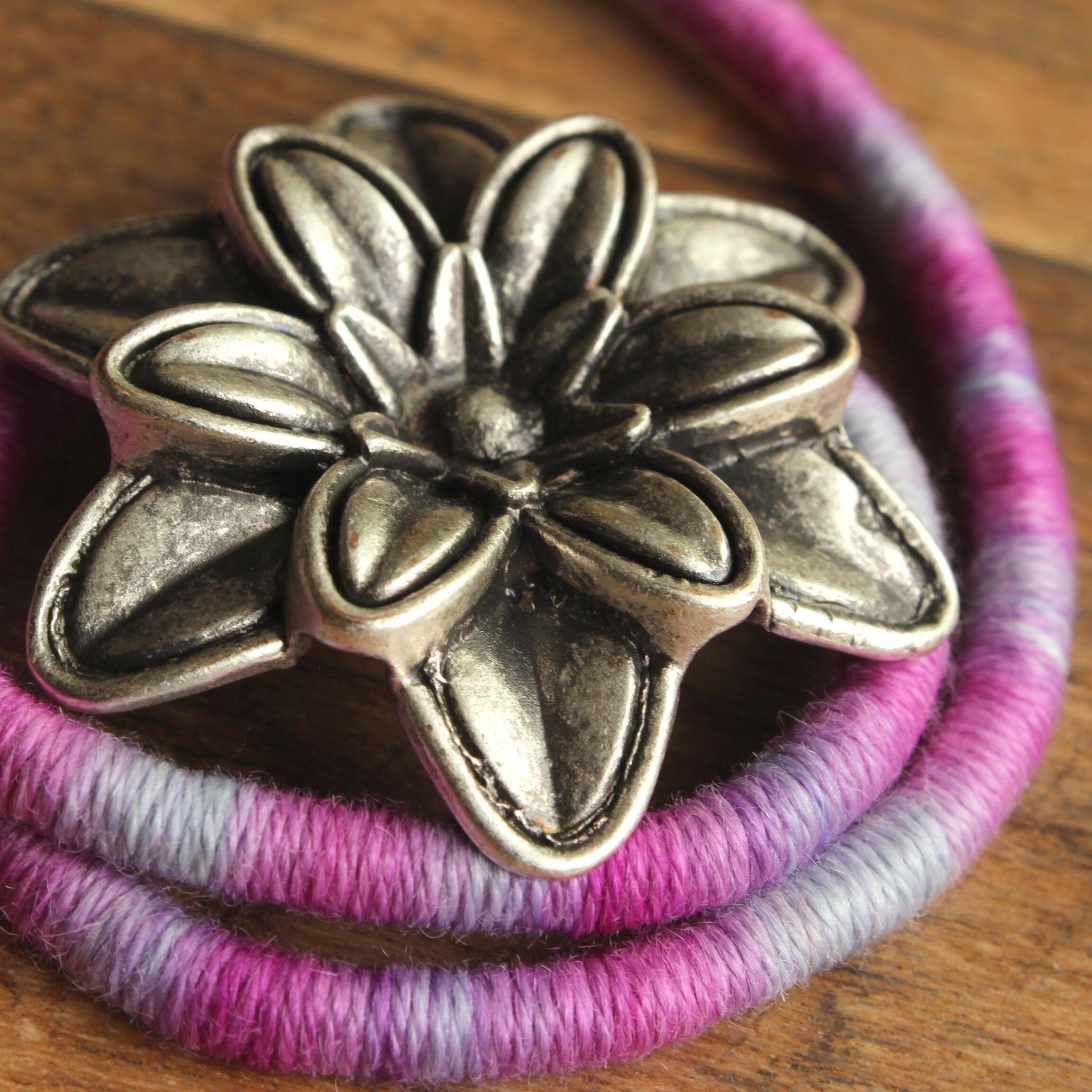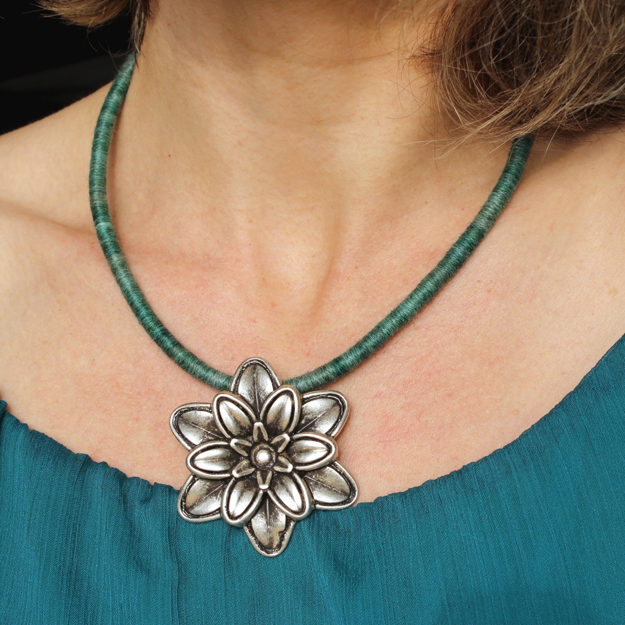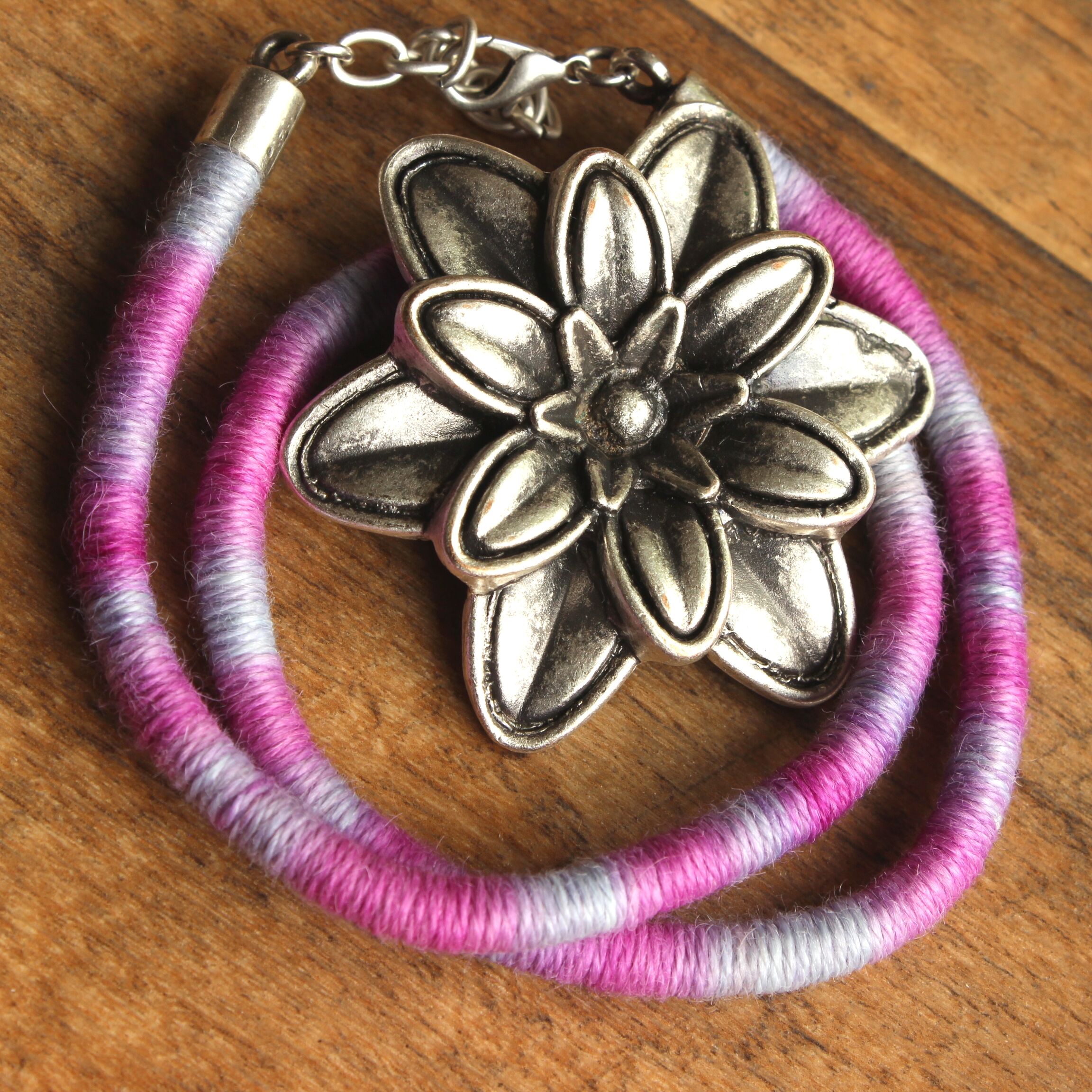 To create this unique necklace made of ultra-soft hand-dyed baby alpaca yarn I used a technique known as thread wrapping. This technique consists of artfully wrapping alpaca yarn around a cotton core by hand. Thanks to this, the beauty and extraordinary softness of alpaca fleece are presented in a unique way.