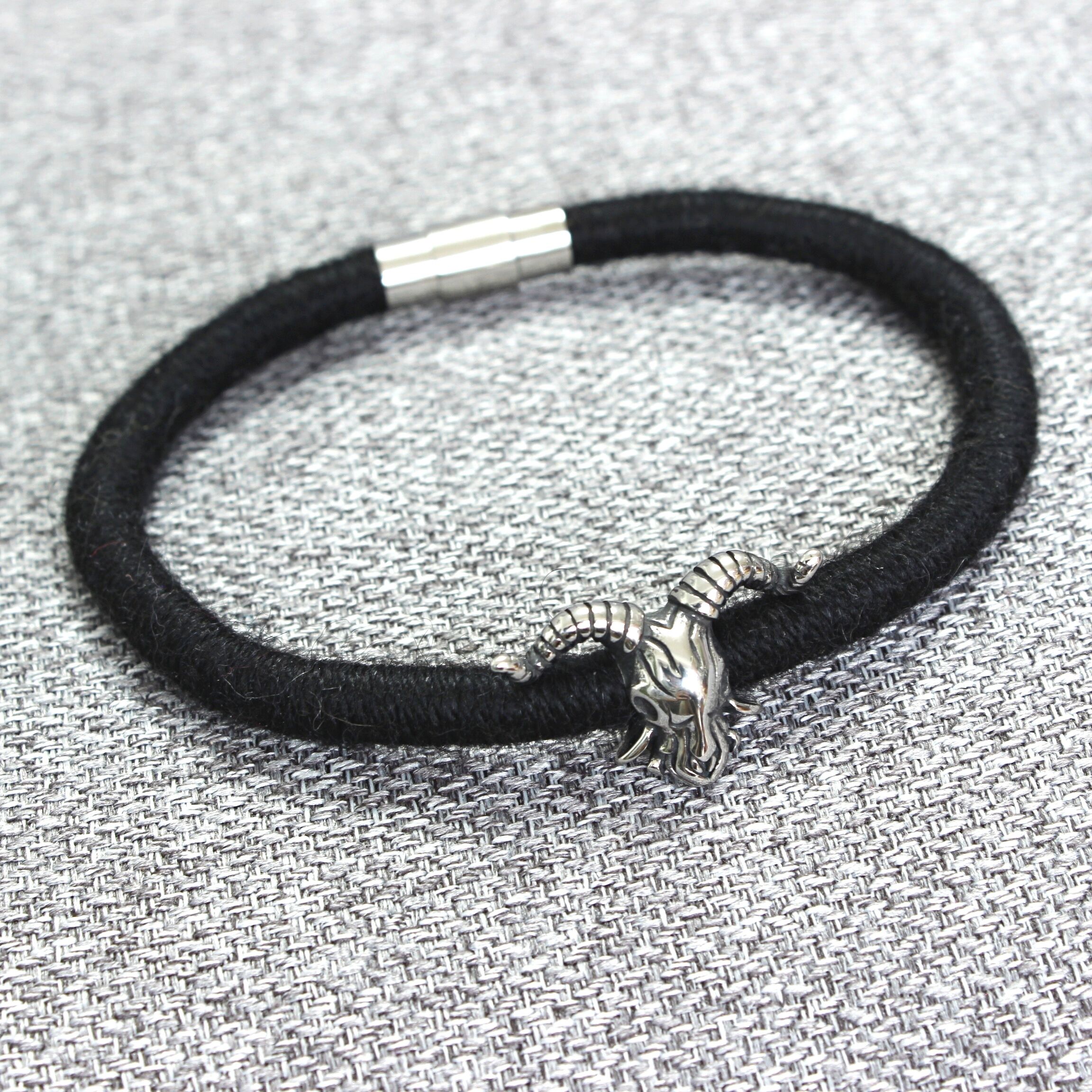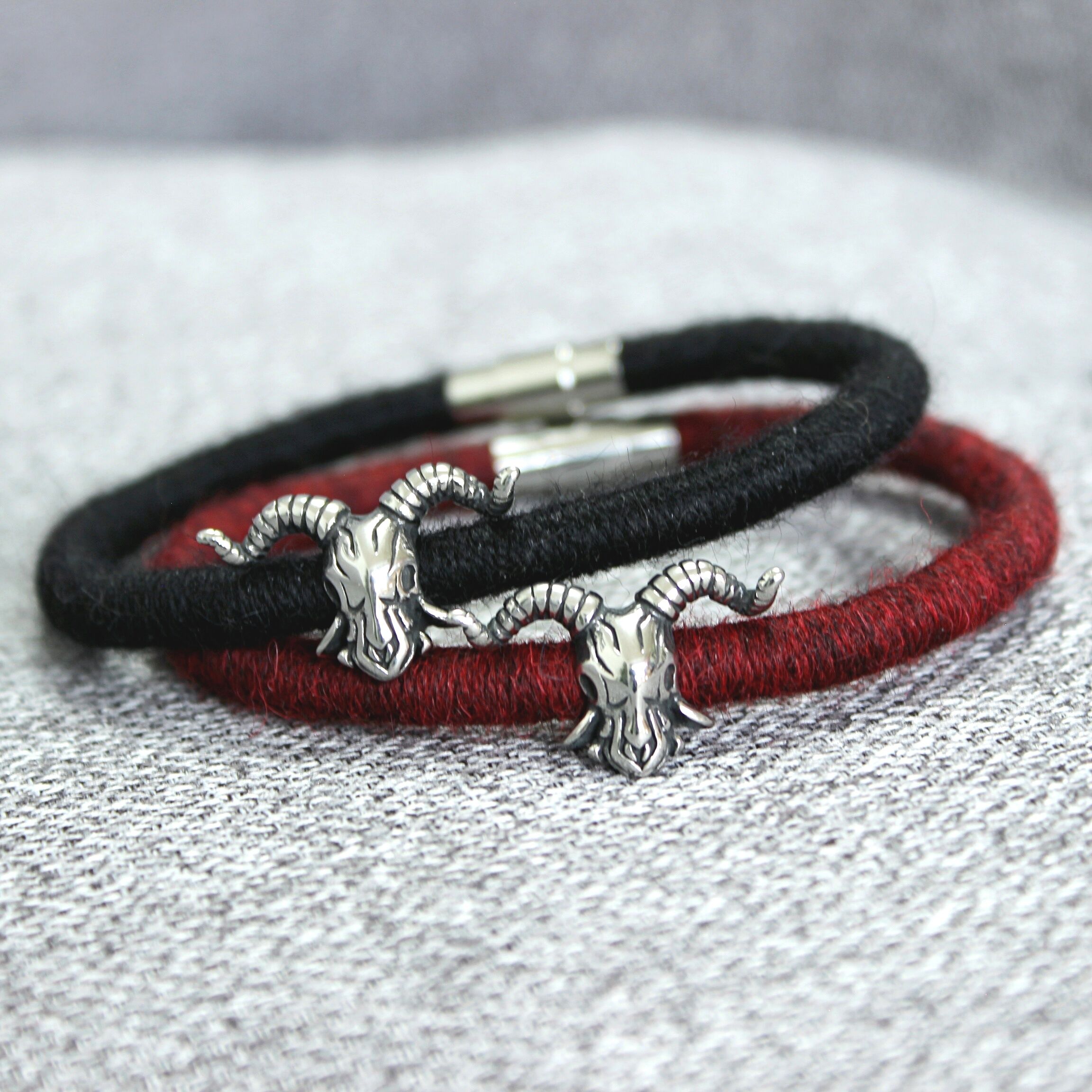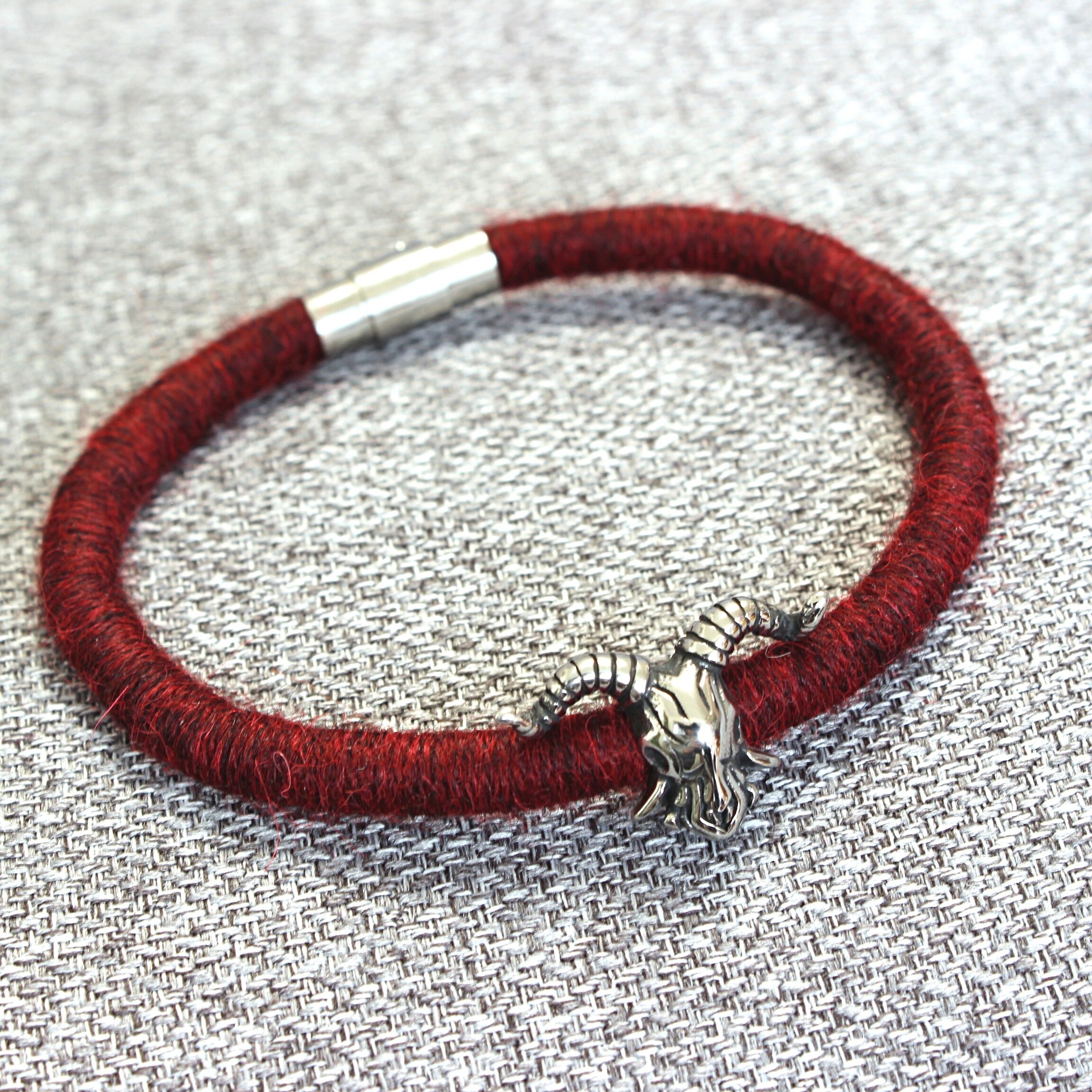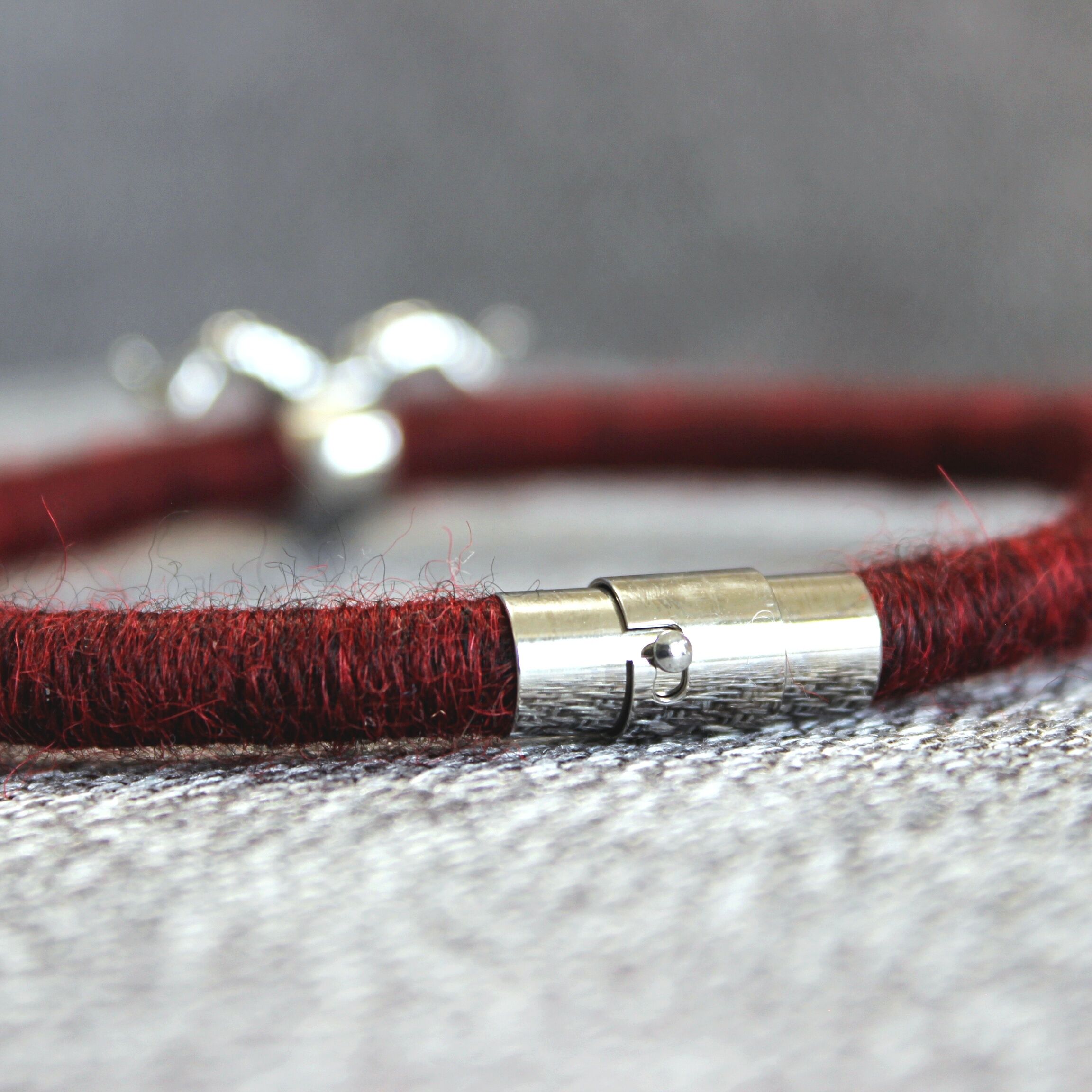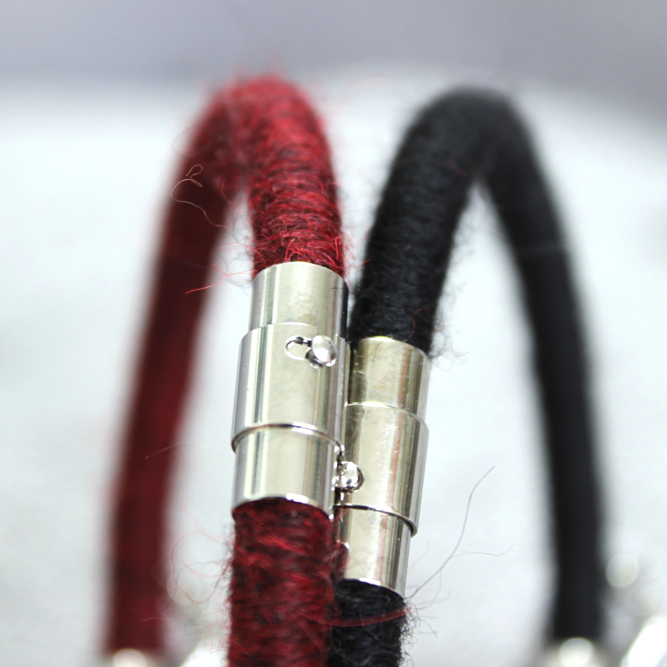 To create these bracelets I used a technique known as a thread wrapping. This technique consists of artfully wrapping alpaca yarn around a cotton core by hand. Thanks to this, the beauty and extraordinary softness of alpaca fleece are presented in a unique way.