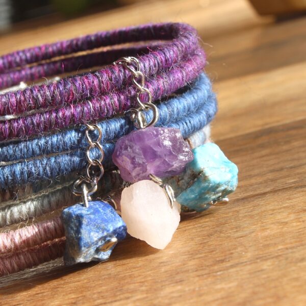 - Hand-blended or hand-dyed Alpaca Yarn (100%): I source only the finest baby alpaca yarn, ensuring the utmost quality and comfort in every bracelet.