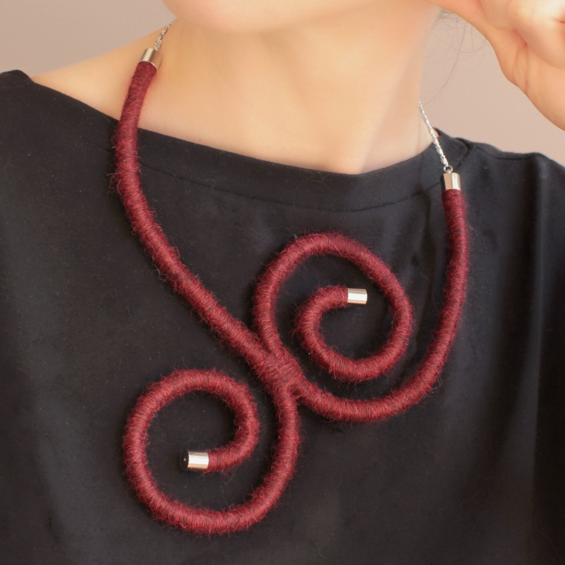 To create this necklace I used a technique known as thread wrapping. The necklace is finished with an elegant chain, lobster clasps and has an adjustable chain as well.