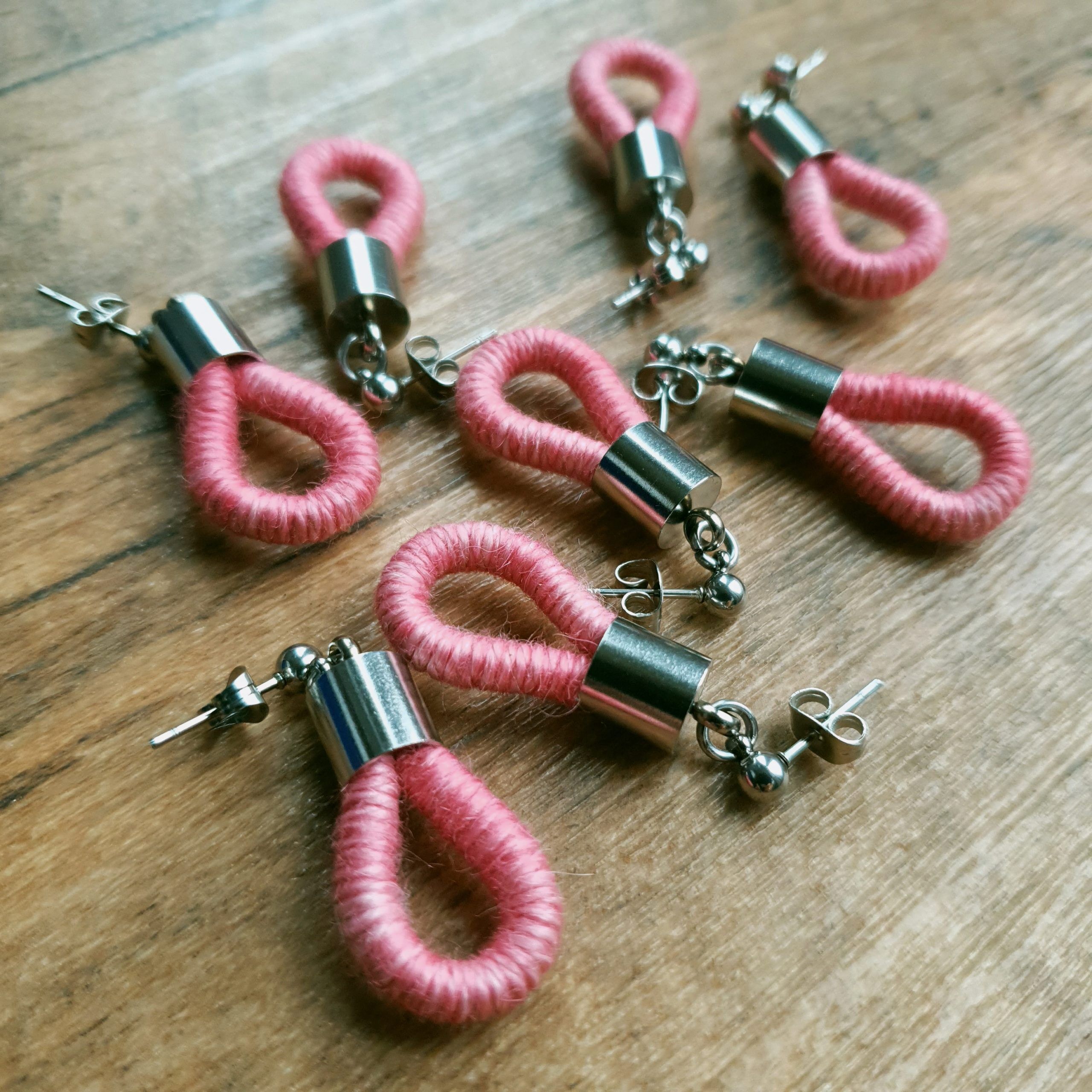 To create these earrings I used a technique known as thread wrapping. This technique consists of artfully wrapping alpaca yarn around a cotton core by hand. Thanks to this, the beauty and extraordinary softness of alpaca fleece are presented in a unique way.
